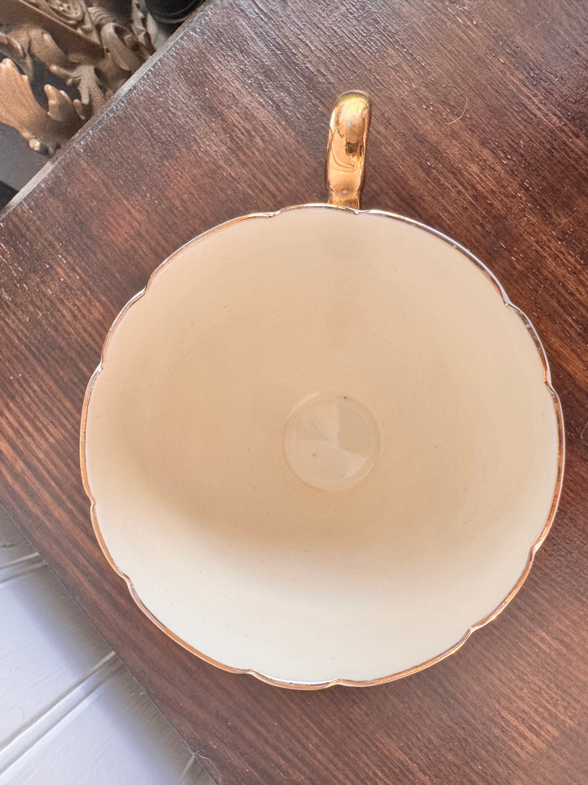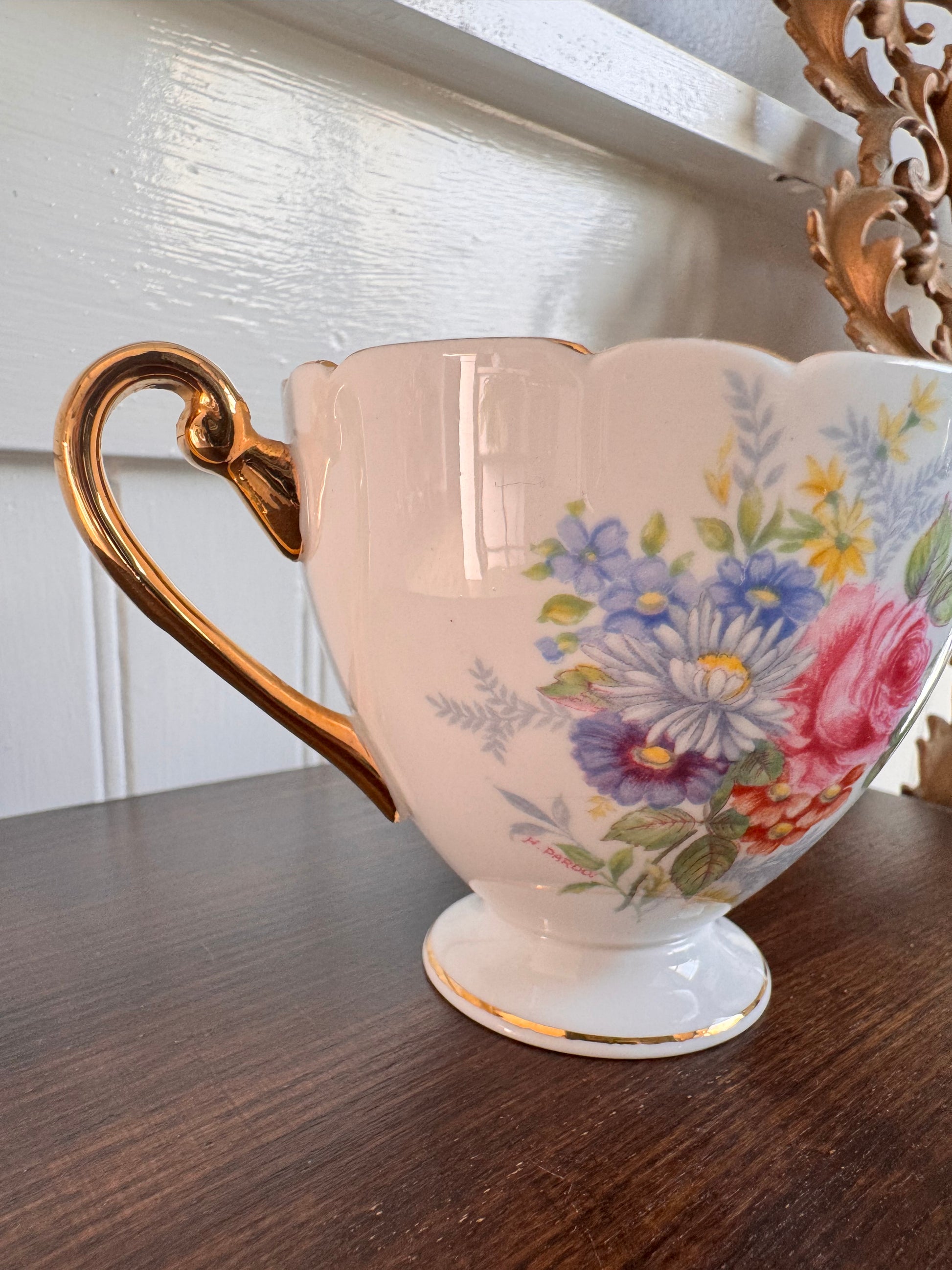 This stunning tea cup from Shelley China has a pattern number of 2318/51. It features an artist's signature and is in excellent condition with no chips, cracks, or crazing. Whether displayed in a tea cup collection or used for enjoying coffee or tea in the morning, this piece stands 3 inches tall and is 3 3/8 inches wide.