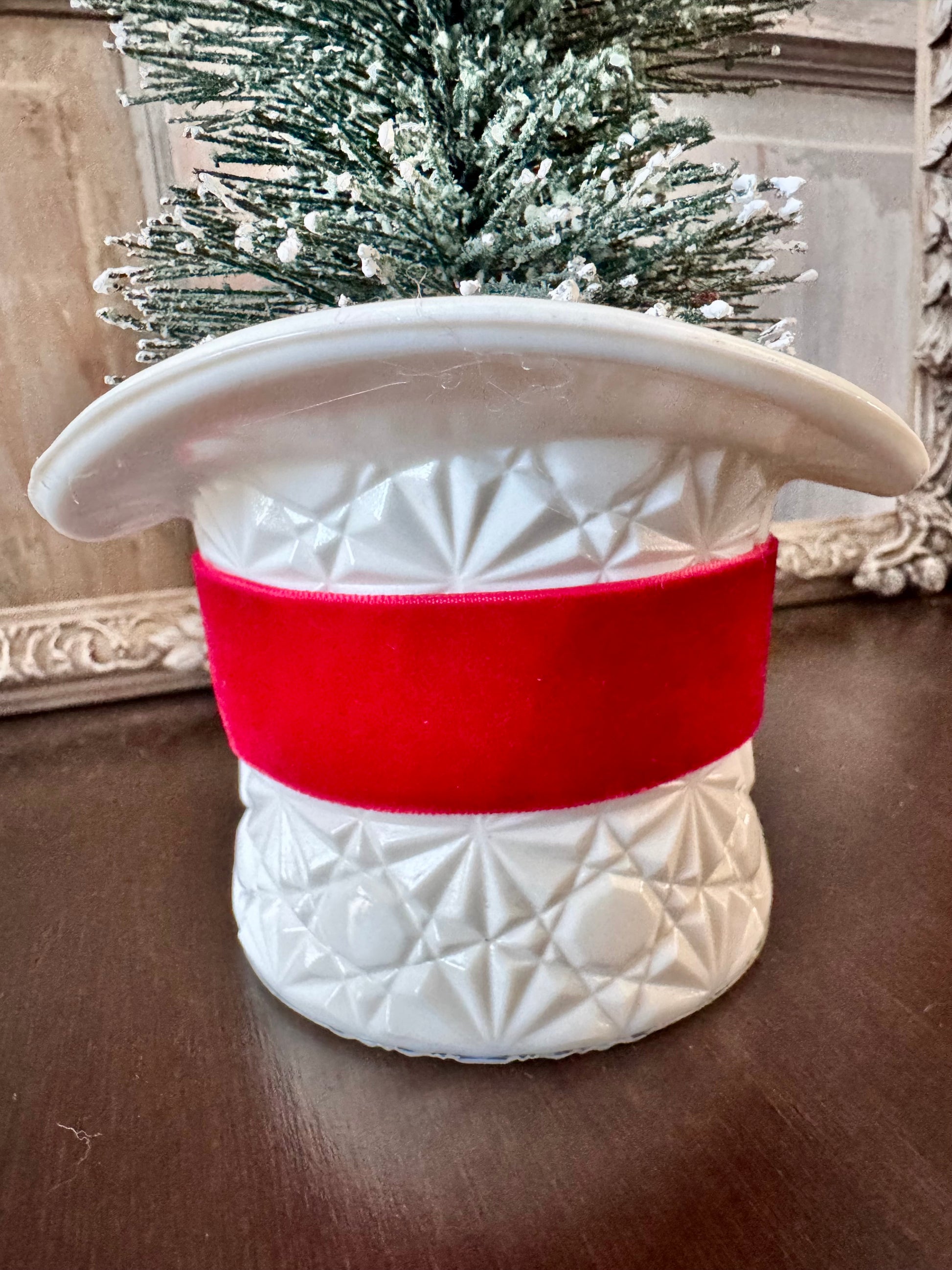 Vintage Daisy & Buttons Milk Glass Top Hat with Tree & Ribbon