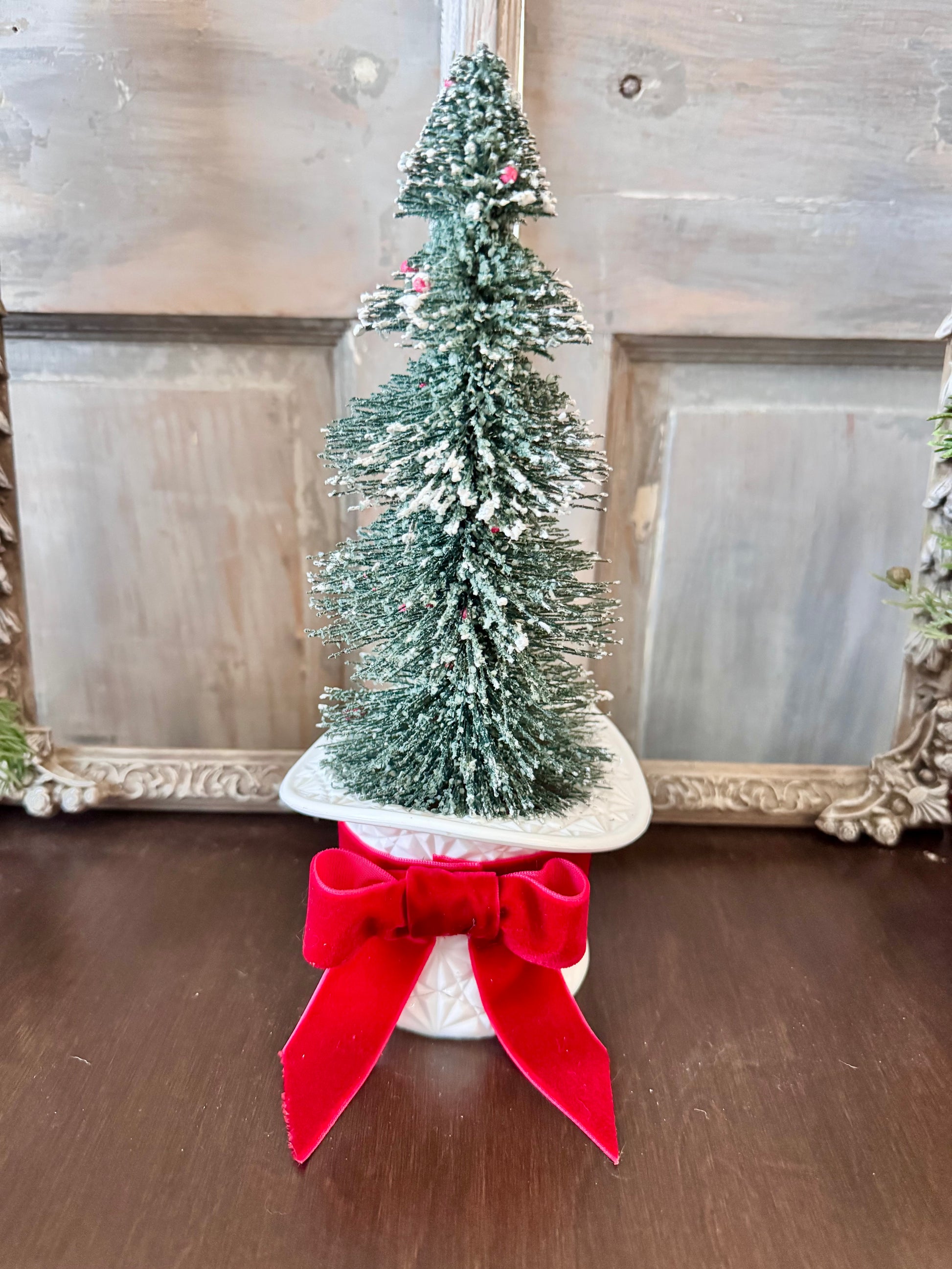 This vintage daisy & buttons milk glass top hat features a tree & ribbon, adding a touch of nostalgia to your home decor. Measuring 11” tall with the tree, and 3.5” without, with a width of 5”, it can be easily adorned for any season or occasion. A versatile and timeless piece for any home. Comes with tree included.